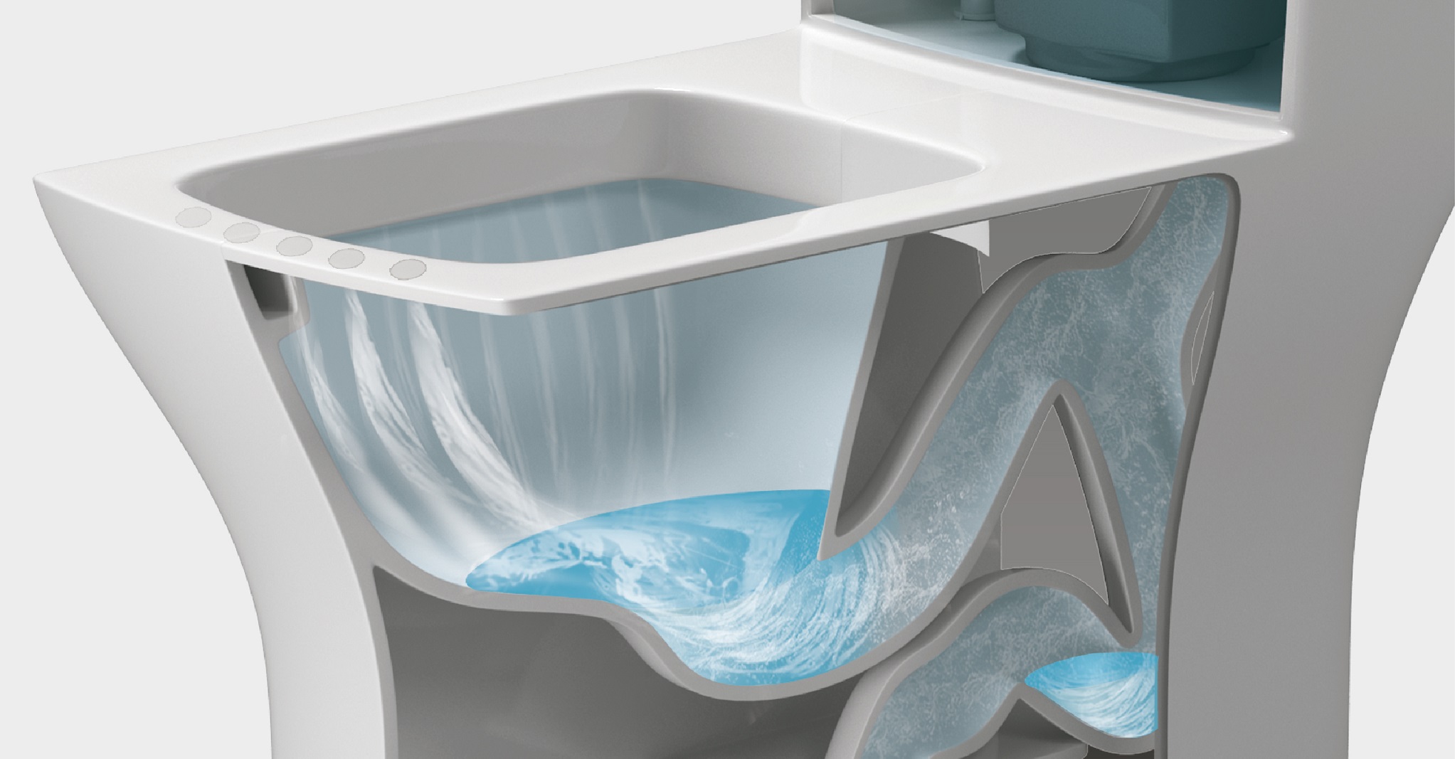 自主研发RIM-X静漩新技术,在马桶内壁形成环形漩涡状水流,让冲洗的速度和面积快而广,使整个唇面无清洗死角,同时有效降低溅水现象的发生