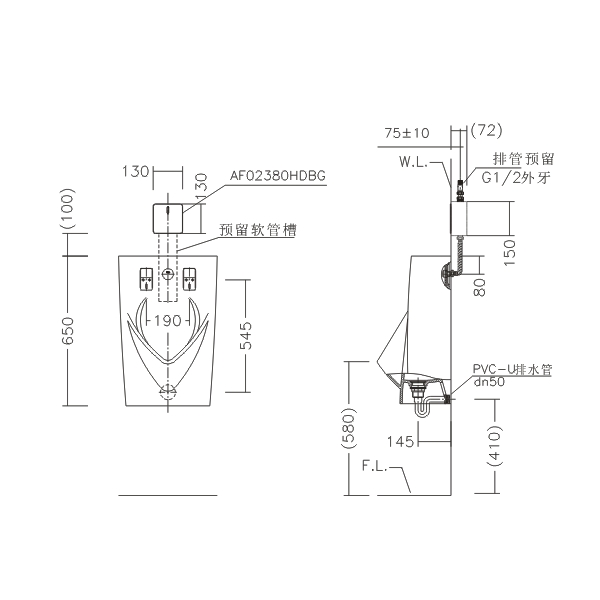 AF02380HDBG嵌入式小便斗感应冲水器(后进水)